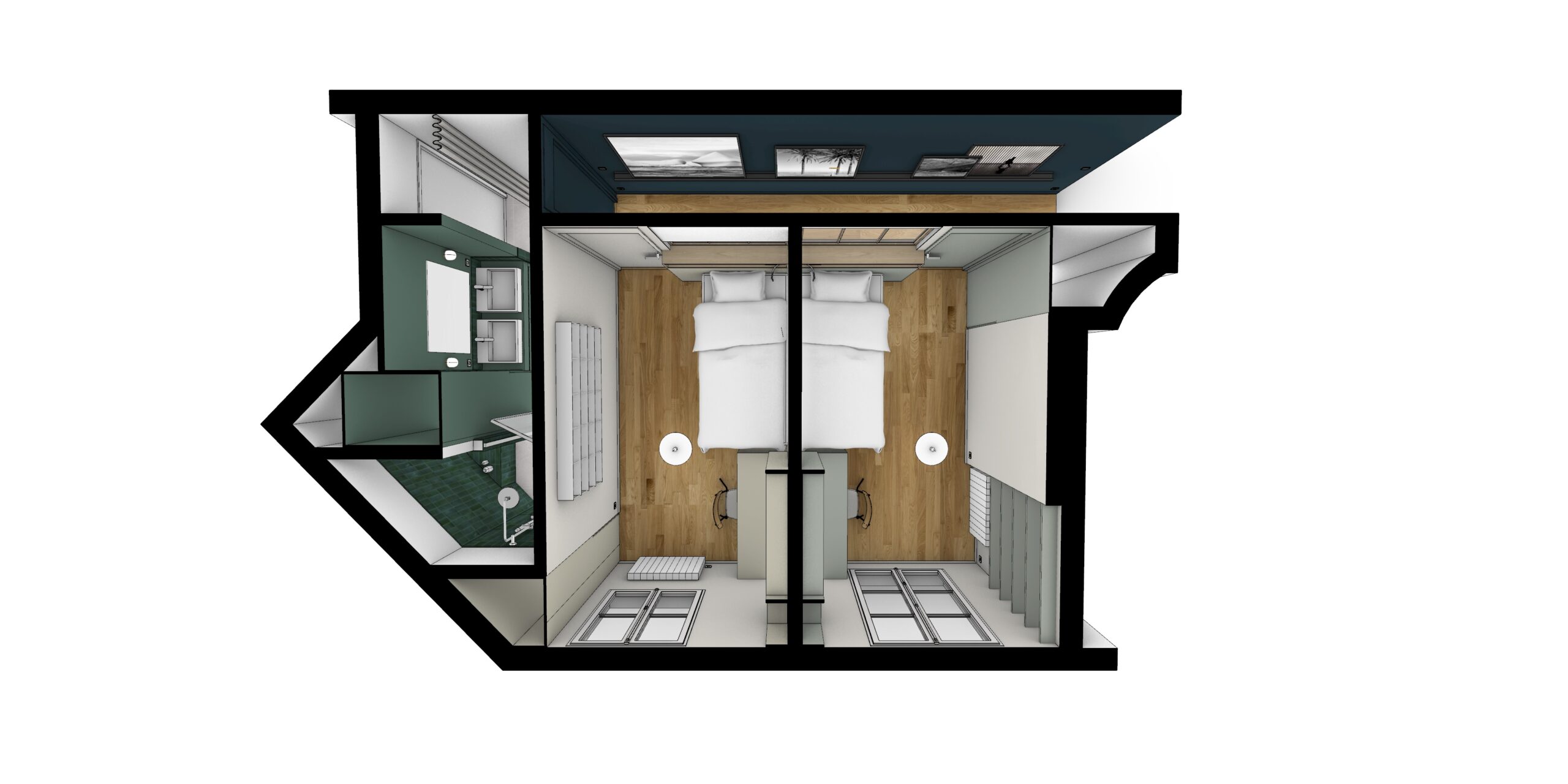 Création de deux chambres d’enfants et leur salle de bains ainsi qu’une chambre parentale.